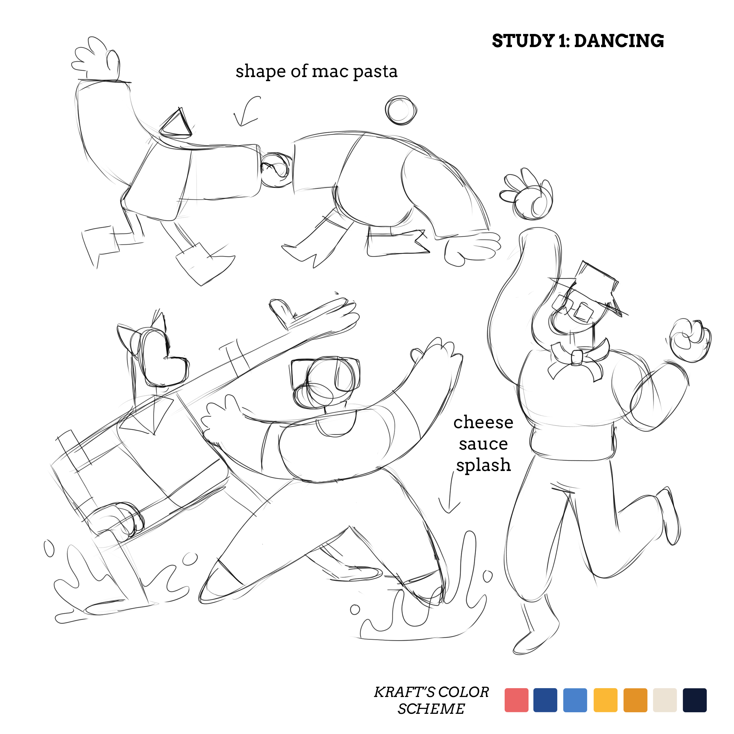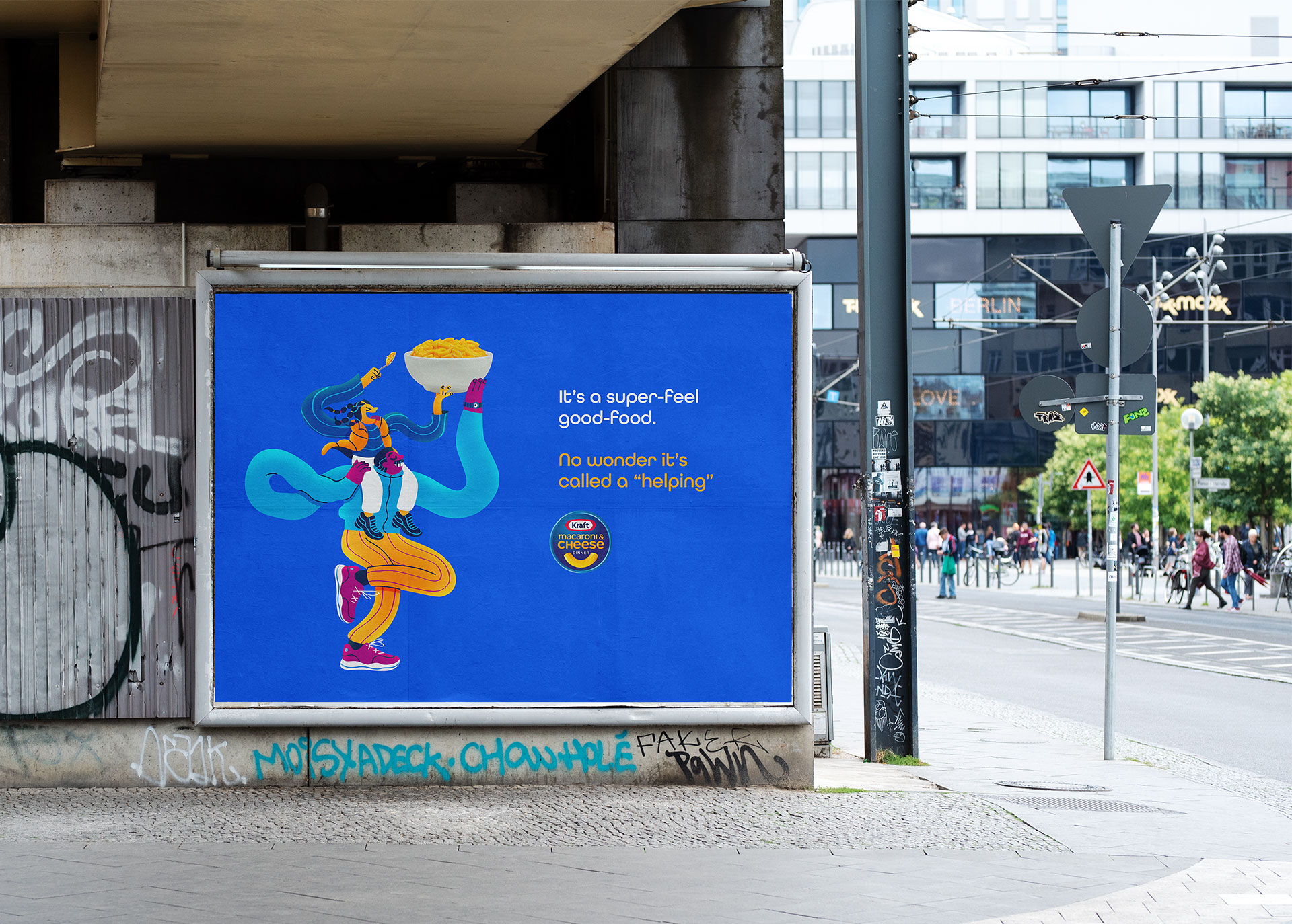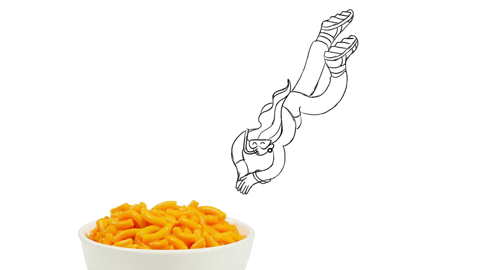 Bowls, clocks and coffee cups grounded the world. Noodly figures carried the lift. Their bodies bent, skipped and unraveled with the looseness people feel when they finally exhale. The characters didn’t exist to decorate the product. They embodied the release people chase at 3pm. The stretch after a long meeting. The reset between responsibilities. Kraft’s audience needed a doorway into that moment and these figures held it open. Breathing Exercises blended real steam, a real spoonful of mac and cheese, and an illustrated figure coaching a deep breath before the bite.